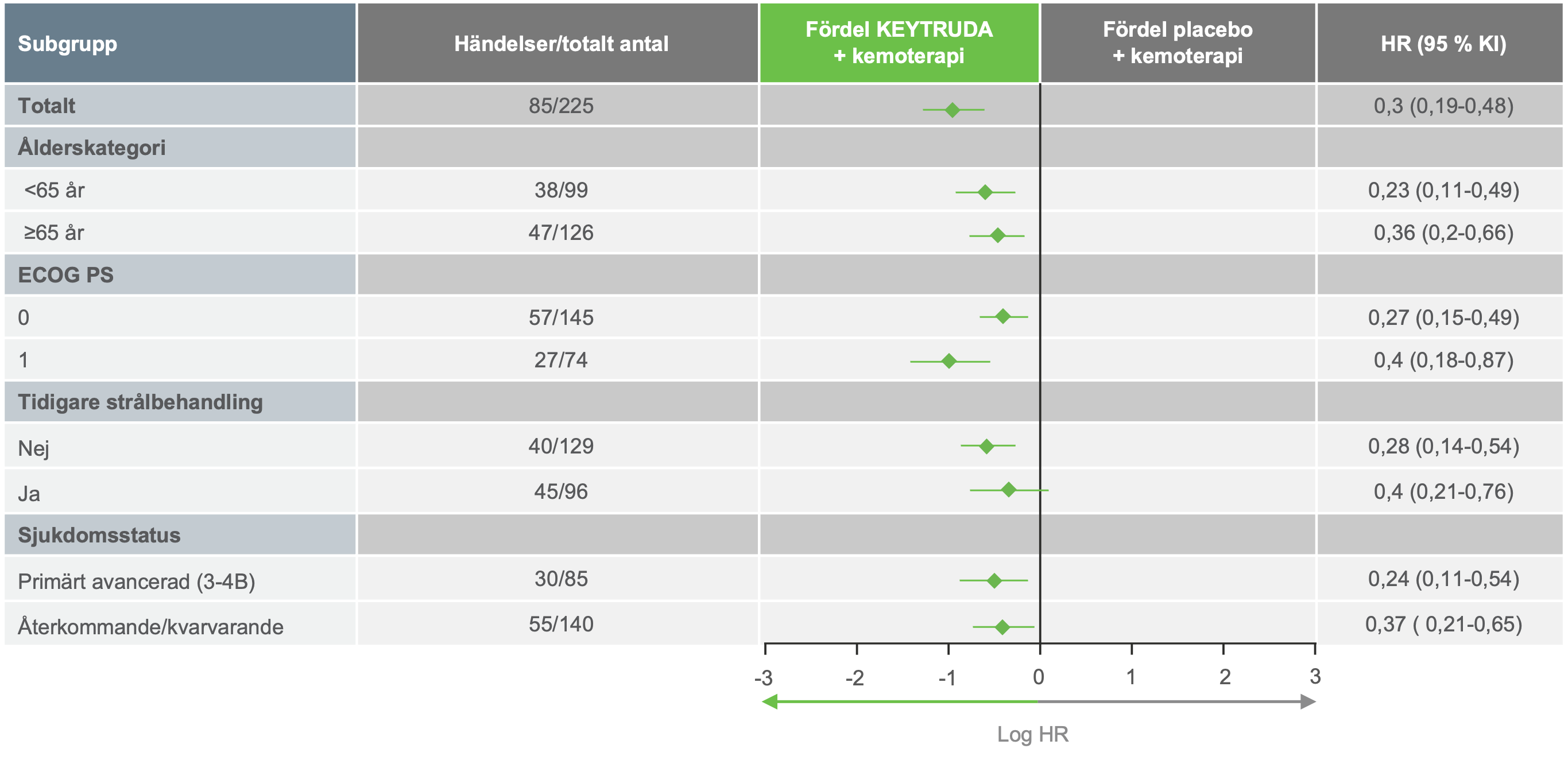 95/294 (32 %) med KEYTRUDA + kemoterapia vs 138/294 (47 %) med placebo + kemoterapia
