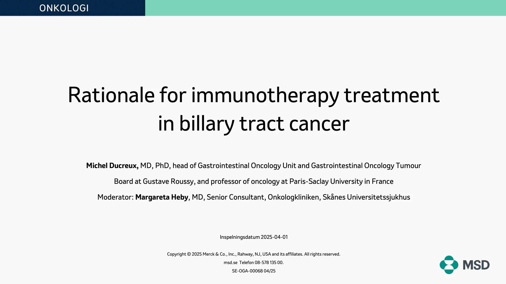 • KEYTRUDA i kombination med gemcitabin och cisplatin är indicerat som första linjens behandling av lokalt avancerad inoperabel eller metastaserad gallvägscancer hos vuxna.