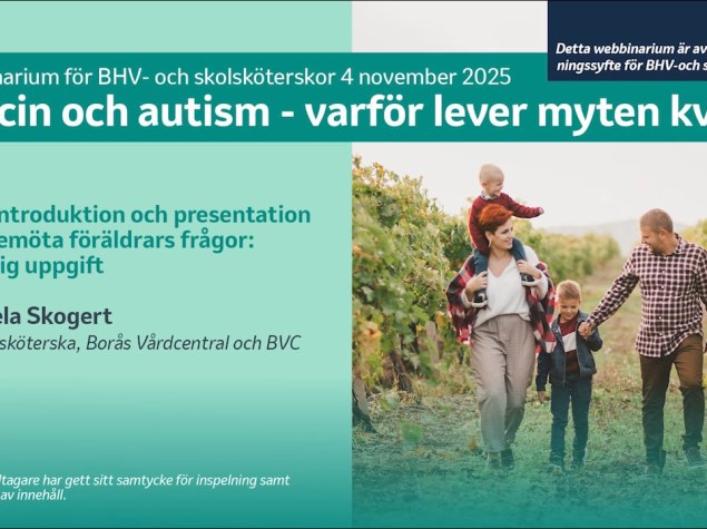 Barnvacciner Webbinarium: ”Vaccin och autism – varför lever myten kvar?” den 4 nov 2025 MSD-webbinarium om vaccin och autism. Stärk kunskapen för att bemöta frågor från föräldrar. Inspelat 4 nov 2025